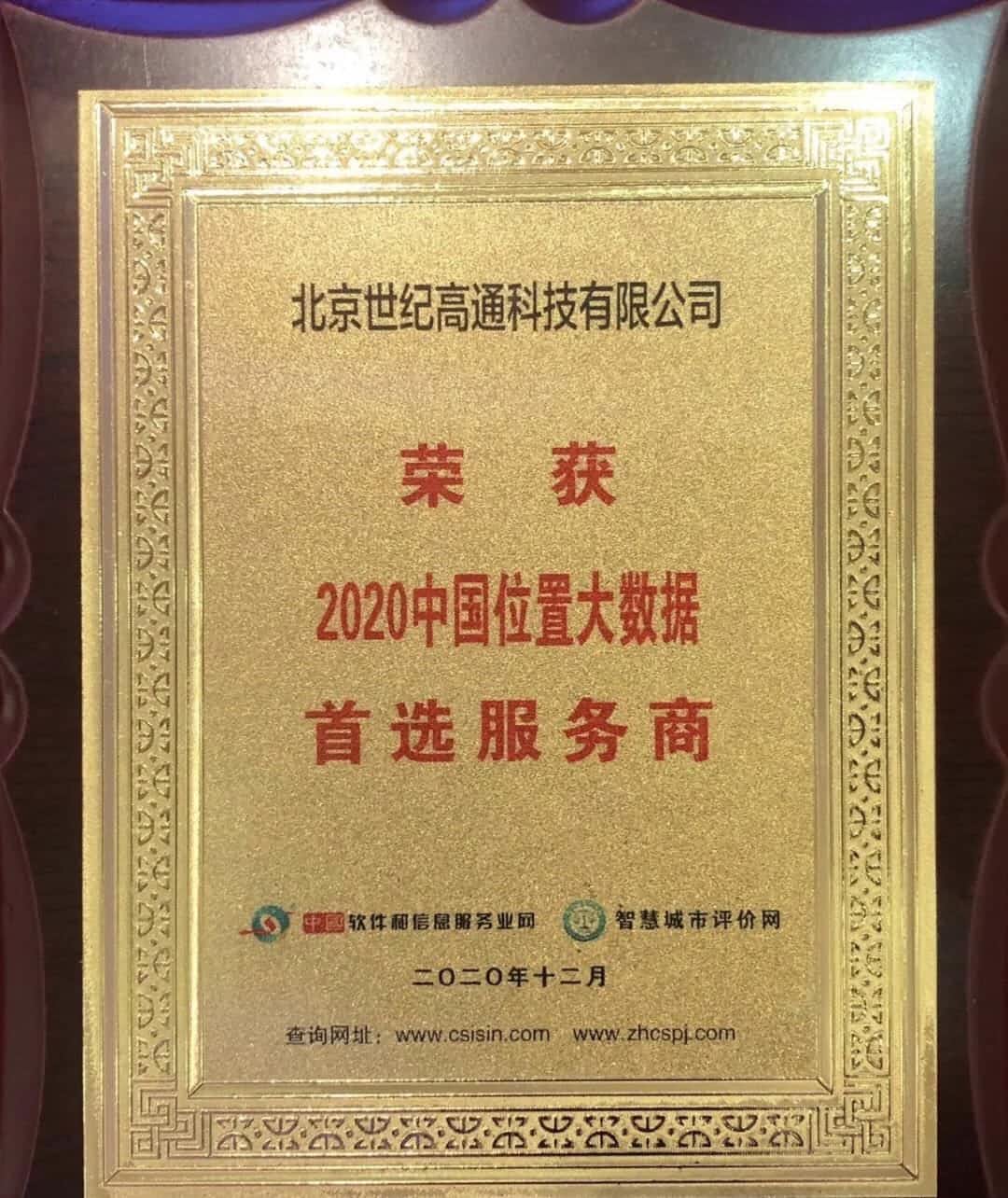 2020中国位置大数据首选效劳商奖项
