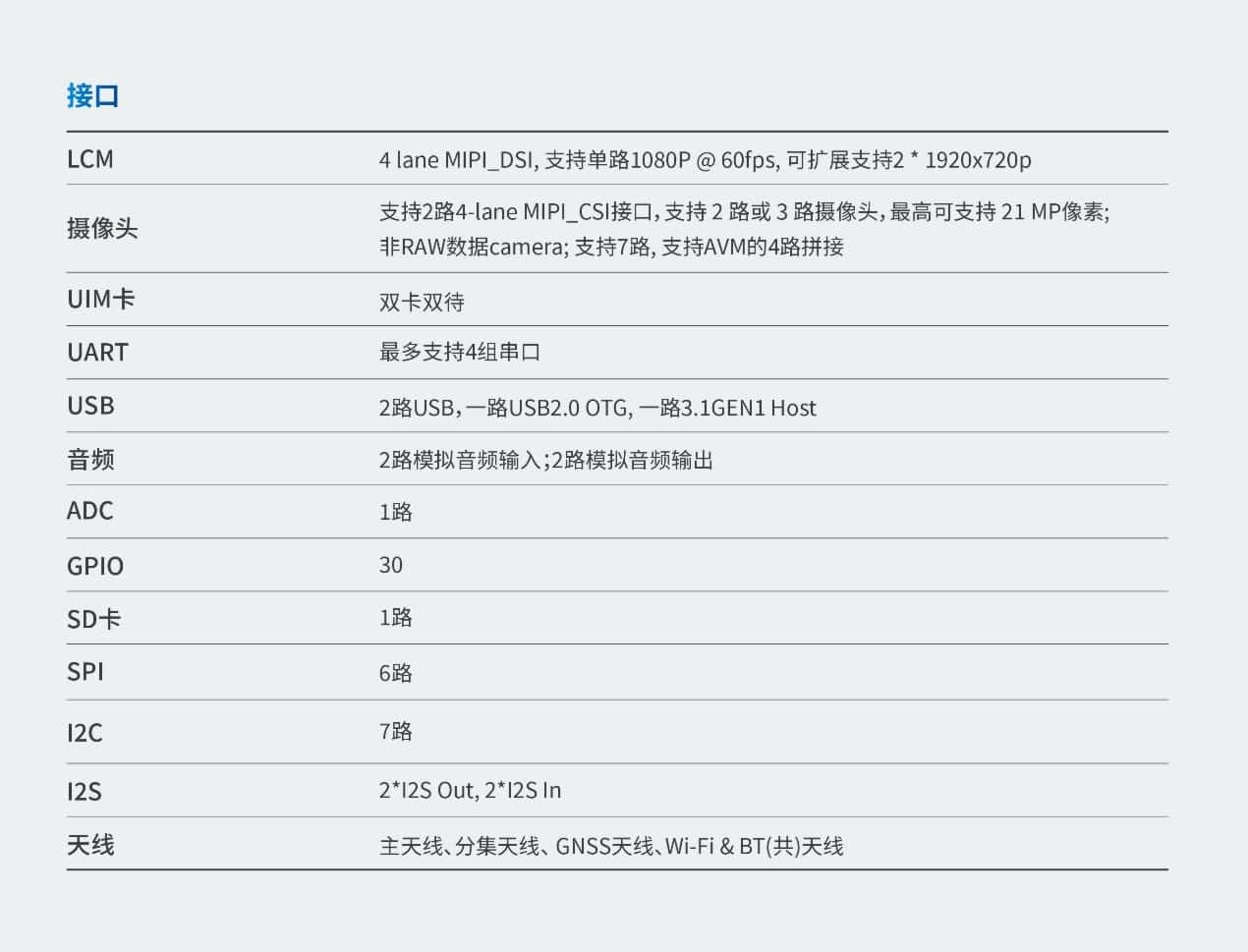 该模组的CPU接纳4核64位ARM Cotex-A53处置惩罚器,,,,,,主频抵达2.0GHz,,,,,,内置IMG GE8300 GPU,,,,,, 支持LPDDR4/4X存储内存,,,,,,可知足车内-40℃~+85℃的宽温要求。。。。。同时提供功效强盛的多标准音视频编解码器及富厚的外围接口,,,,,,支持1080P高清显示,,,,,,可同时实现多路高清视频输入录制。。。。。