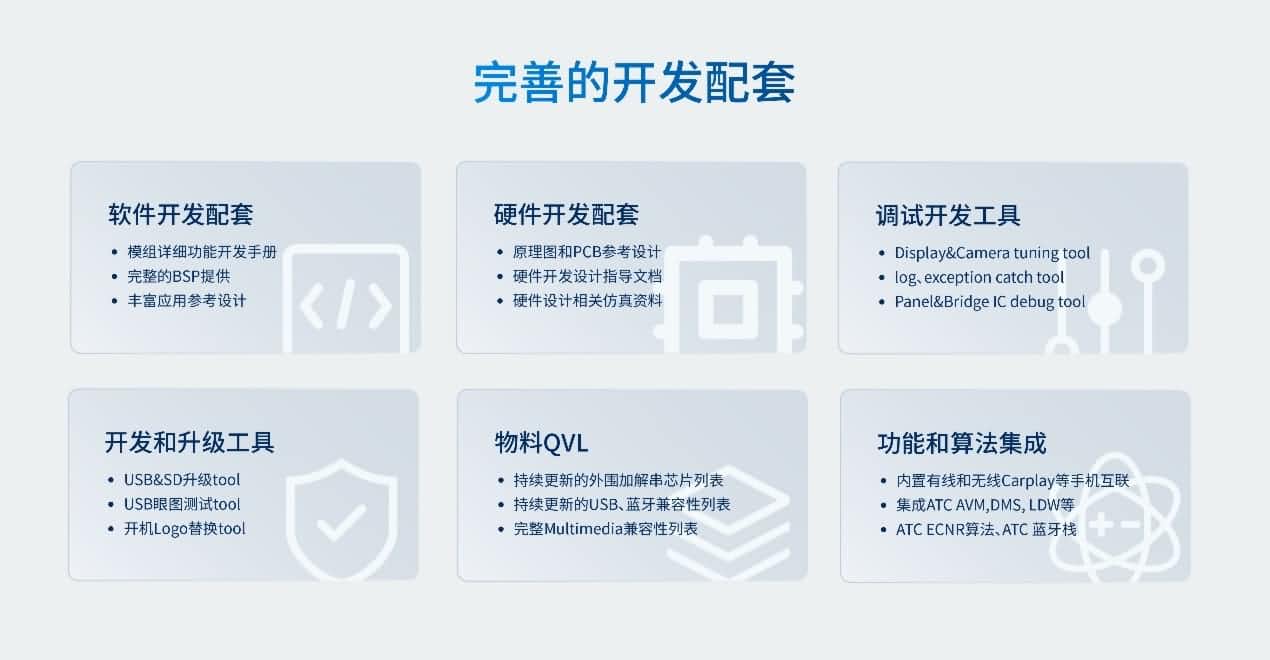 AC8257车联网模组可提供完善的开发配套效劳,,,,,,包括软硬件开发配套、调试开发工具、开发和升级工具、物料QVL、功效和算法集成等,,,,,,内置生态集成度高。。。。。